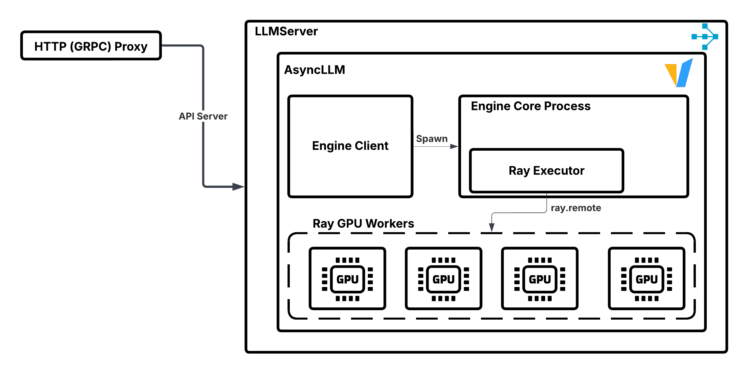 Ray Serve LLM 能够利用单个推理引擎(如 vLLM)的性能,并将其扩展以支持