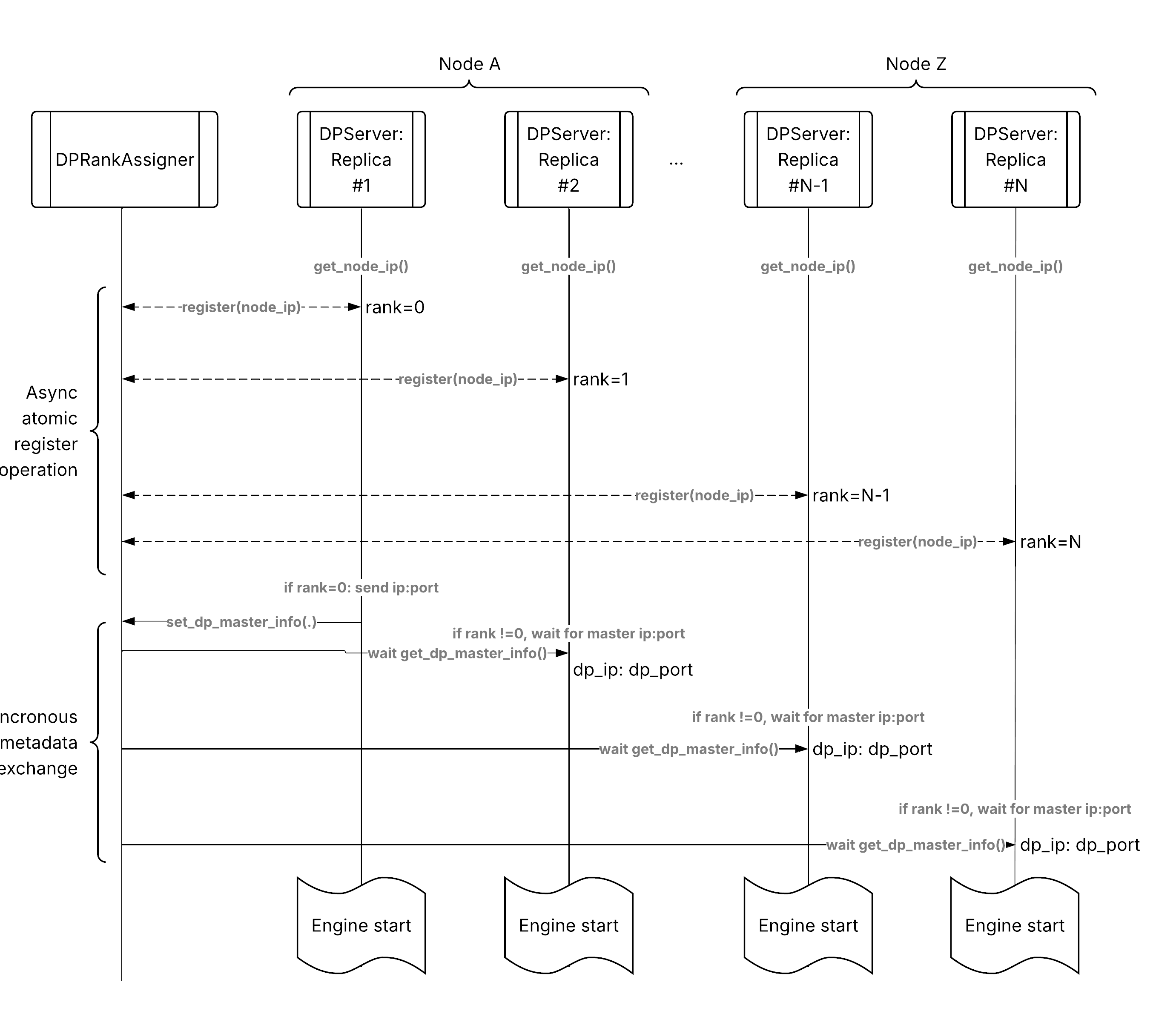 与基本服务的关键区别在于,所有 dp_size 个副本都在相互协调工作,而不是孤立地工作。